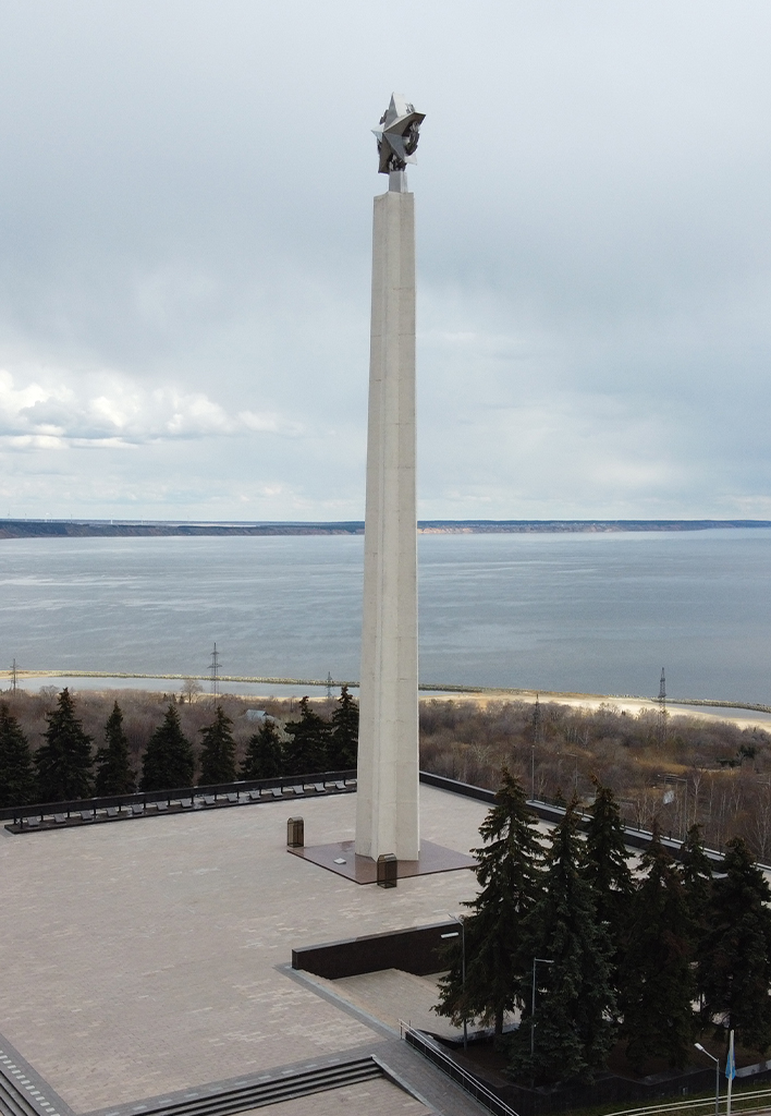 Памятник-обелиск Вечной Славы - пятигранный, светлый, в высоту 47 метров, увенчан объемной пятиконечной звездой с лавровым венком. Обелиск установлен на верхней площадке памятника – стилобате.